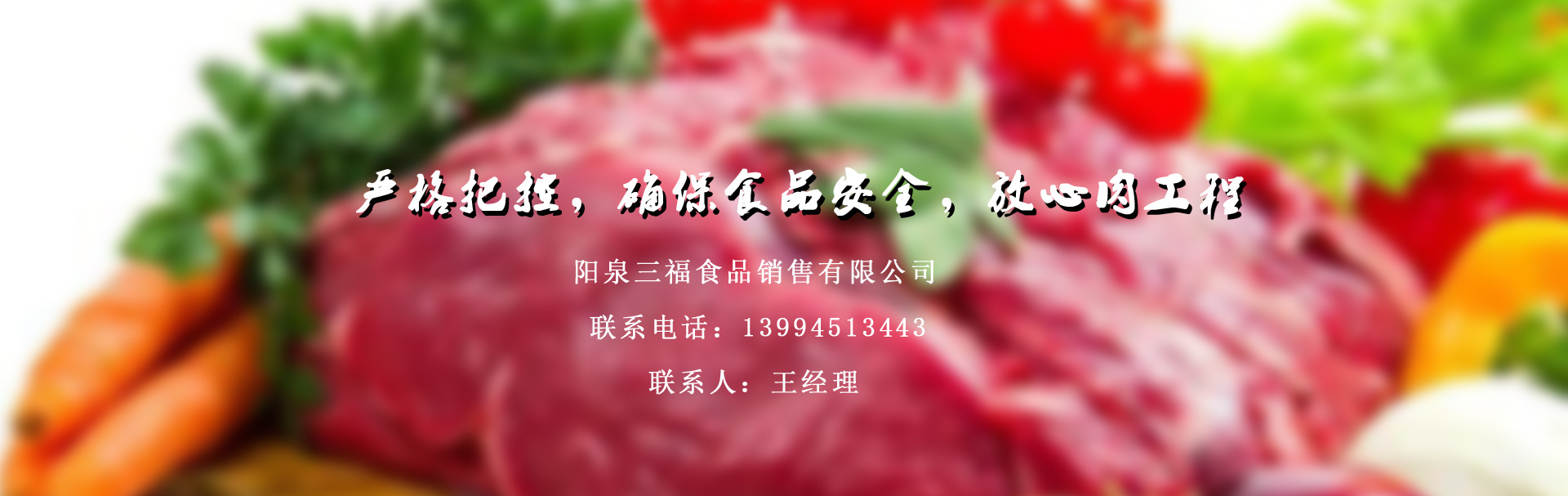 陽泉三福食品銷售有限公司成立于二零零六年九月,位于陽泉市城區桃南中路28號,資質為一般納稅人,是政府批準的合法具有外調肉類的單位之一。在2012年獲得中國人民銀行頒發的AAA機構信用代碼證。現主要提供以下供貨渠道:     1、 冷鮮肉類的批發     2、 凍貨...